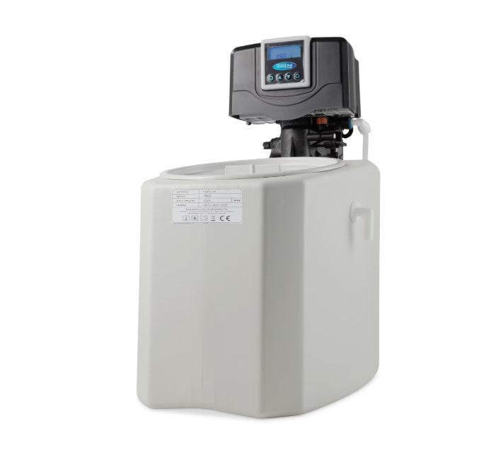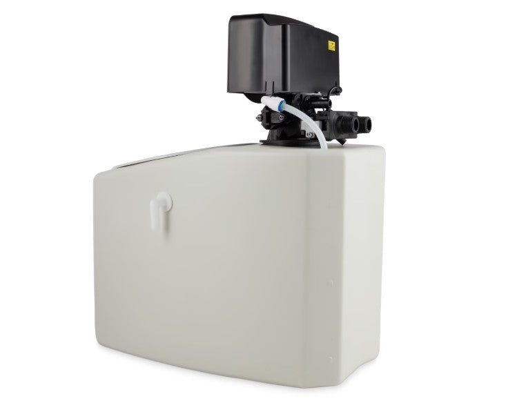Dette elektriske blødgøringsanlæg er fyldt med kugler af syntetisk harpiks. Disse omdanner kalken til natrium, som ikke er skadeligt for dit helbred eller dine maskiner. Når du har brugt blødgøringsanlægget i et stykke tid, bliver harpikskuglerne mættede. Heldigvis er denne enhed selvrensende. Salt sørger for, at harpikskuglerne frigiver den lagrede kalk og udledes via saltvandet. Denne proces kaldes 'regenerering'. Regenereringen sker automatisk. Man skal blot indtaste den testede vandhårdhed i maskinens display, så beregner systemet selv den mest effektive tidsplan for regenerering. Displayet viser også det antal liter, der er til rådighed, før der er behov for en ny regenereringscyklus.