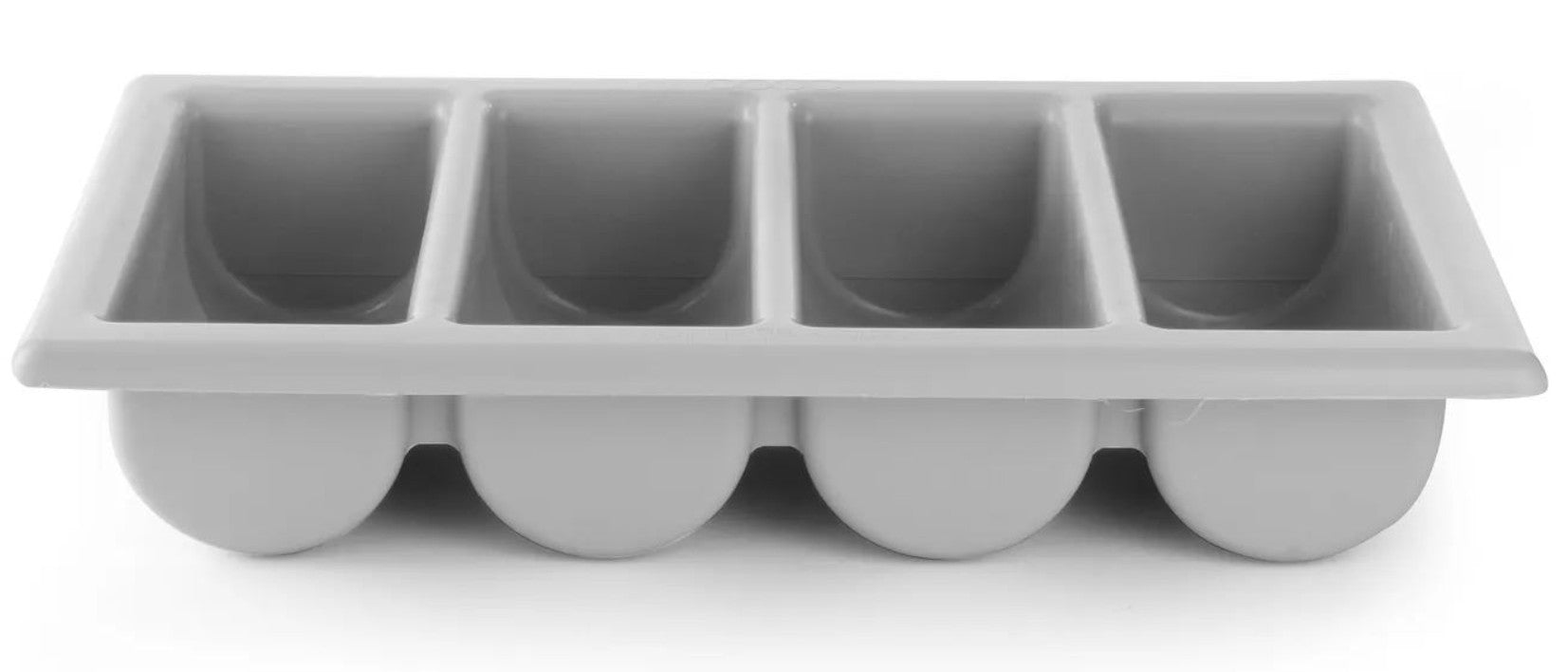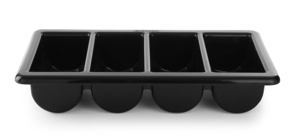 Praktiske bestikbakker fra Hendi med fire rum. Lavet i plast som tåler opvaskemaskine for nem og praktisk rengøring. Vælg sort eller grå farve.