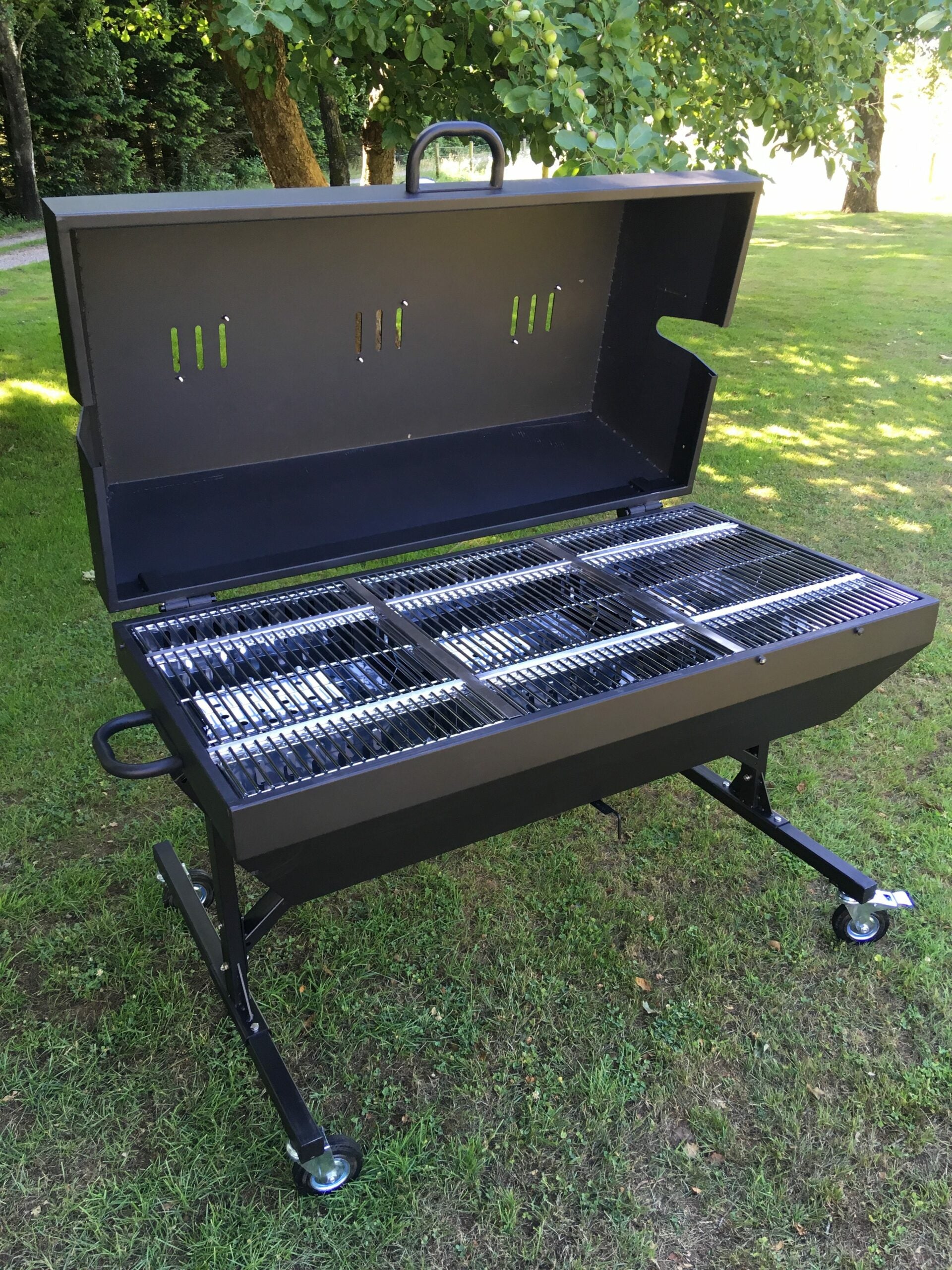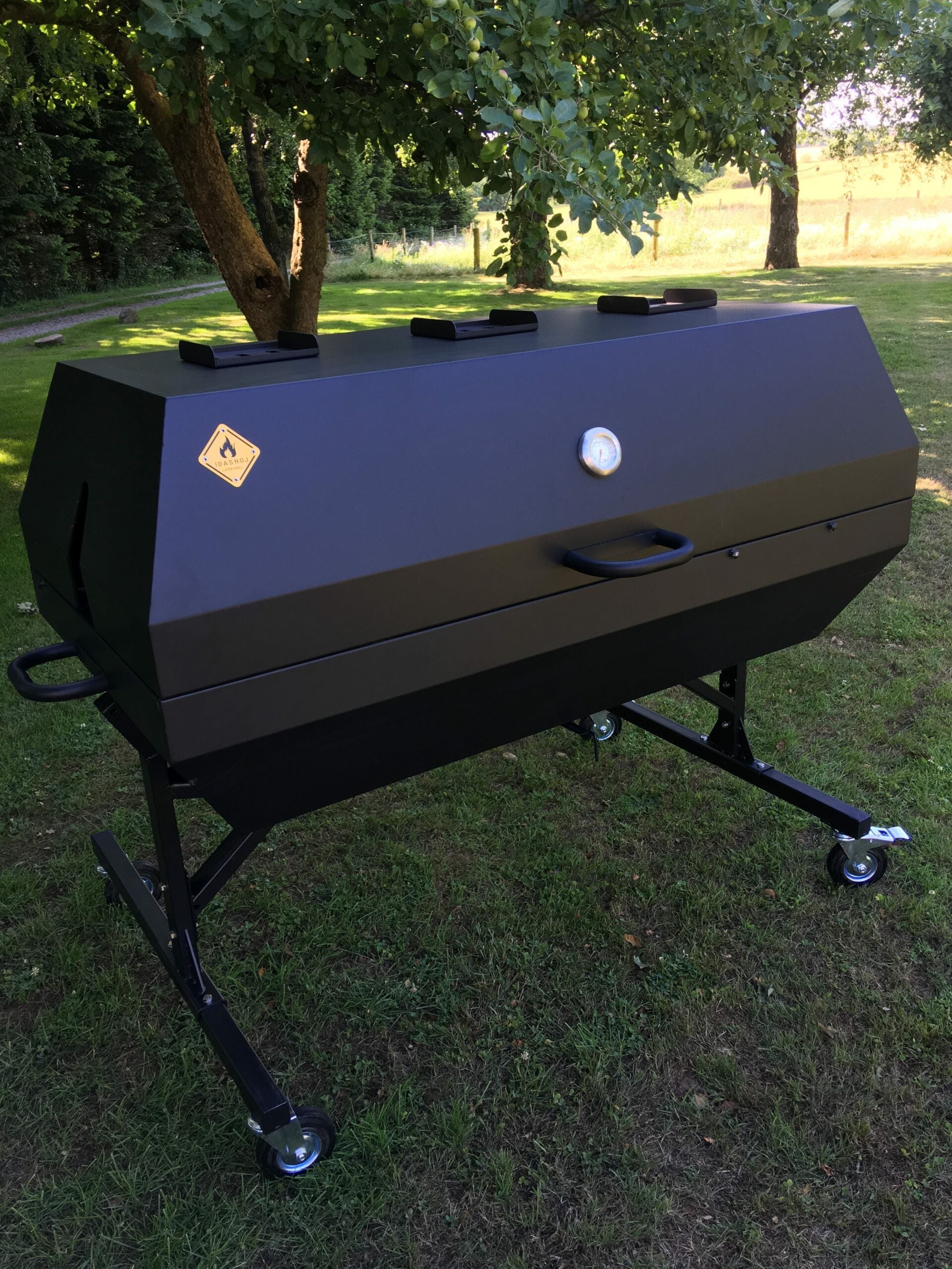 Dette er den kraftige model på hjul og stabilt understel. Grillen er udført i 1,5 mm. plade (hvor der normalt anvendes 1,0 eller 1,2mm)