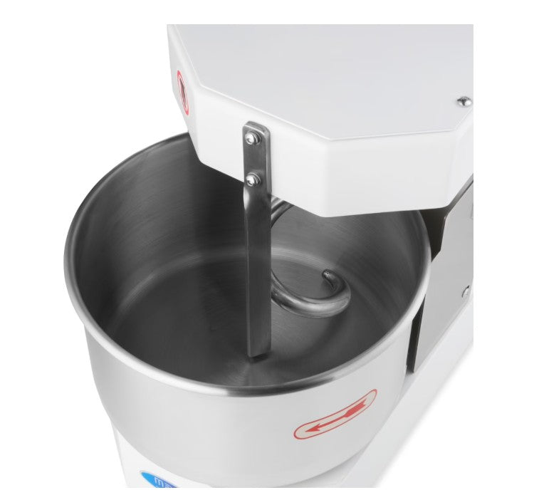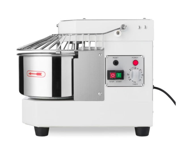 Det kan være svært at ælte store mængder dej i hånden. Ved hjælp af denne 8-liters røremaskine kan du nemt forvandle 4,5 kg ingredienser til en glat dej. Den maksimale mængde mel er 3 kg, og den maksimale mængde dej er 4,5 kg. Du kan også ælte mindre mængder dej, så længe de ikke er mindre end 1,5 kg. Både dejkrogen og røreskålen roterer for at sikre, at alle ingredienser blandes godt og er klar til bagning. Røremaskinen er et aktiv for ethvert professionelt køkken i restauranter, bagerier og caféer. Takket være den praktiske timer kan du også lade røremaskinen gøre sit arbejde af sig selv.