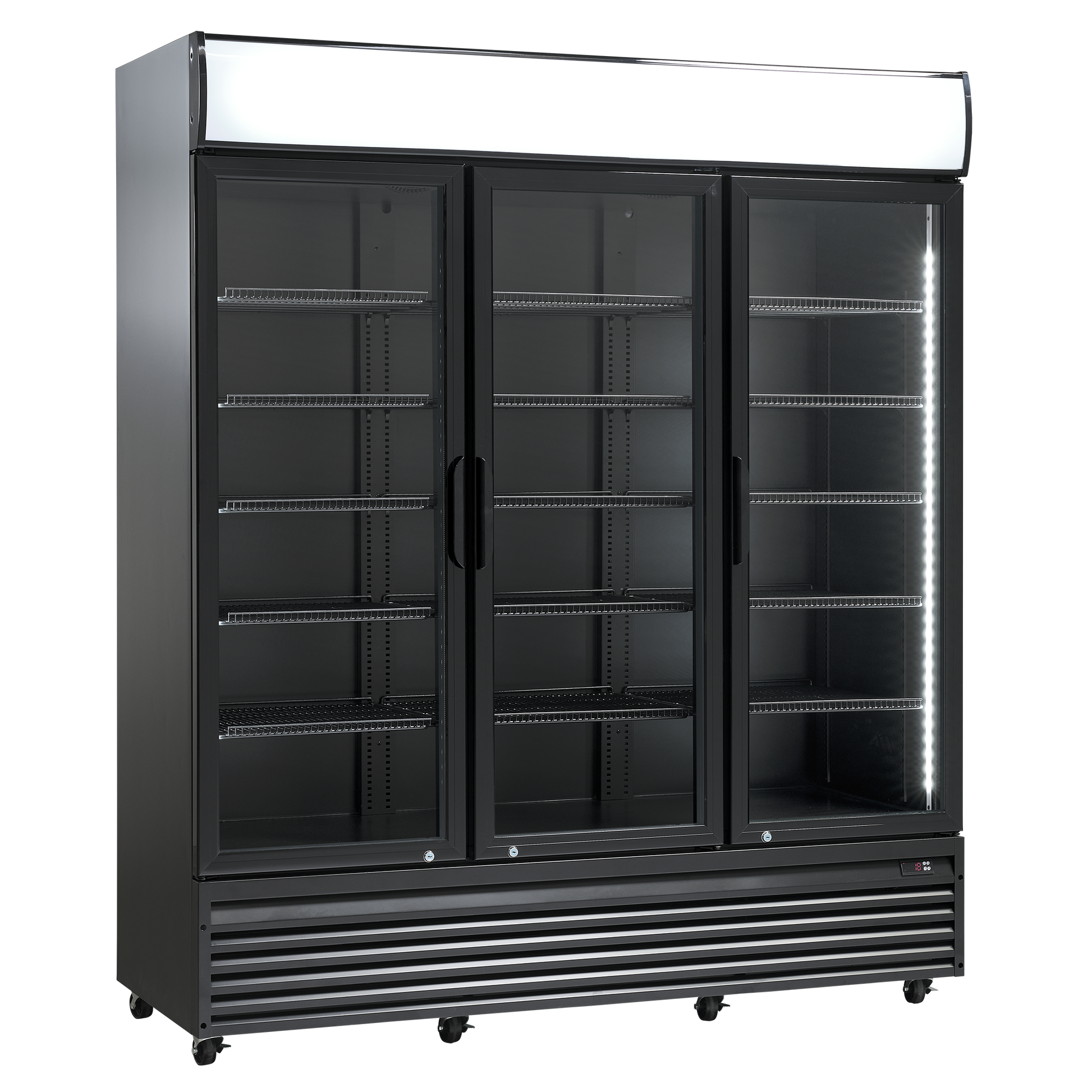 SD 1502 HE er et stort 3-dørs display køleskab, med 1383 netto liter kølerum.