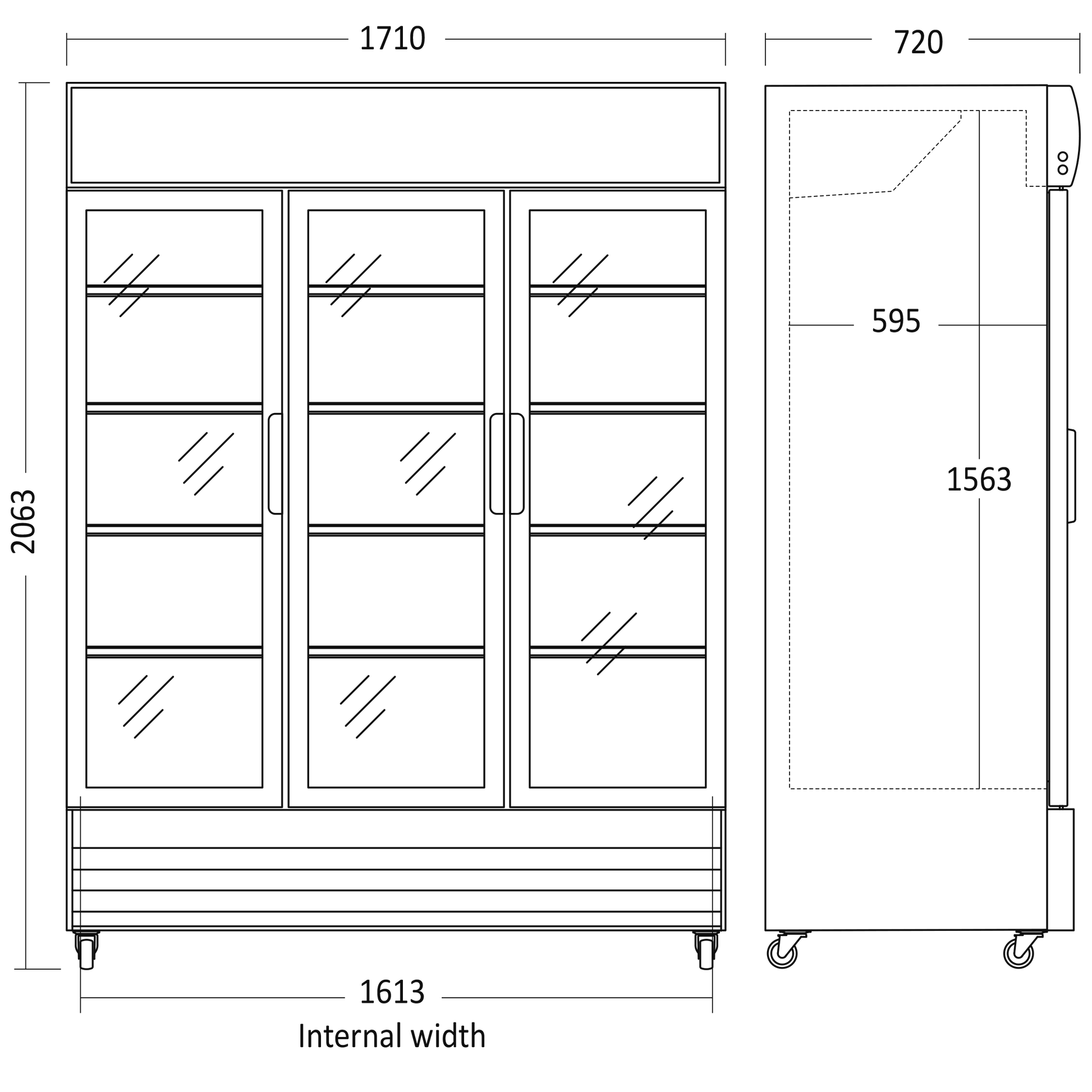 Indvendige mål, HxBxD, mm:1563,5 x 1613 x 595