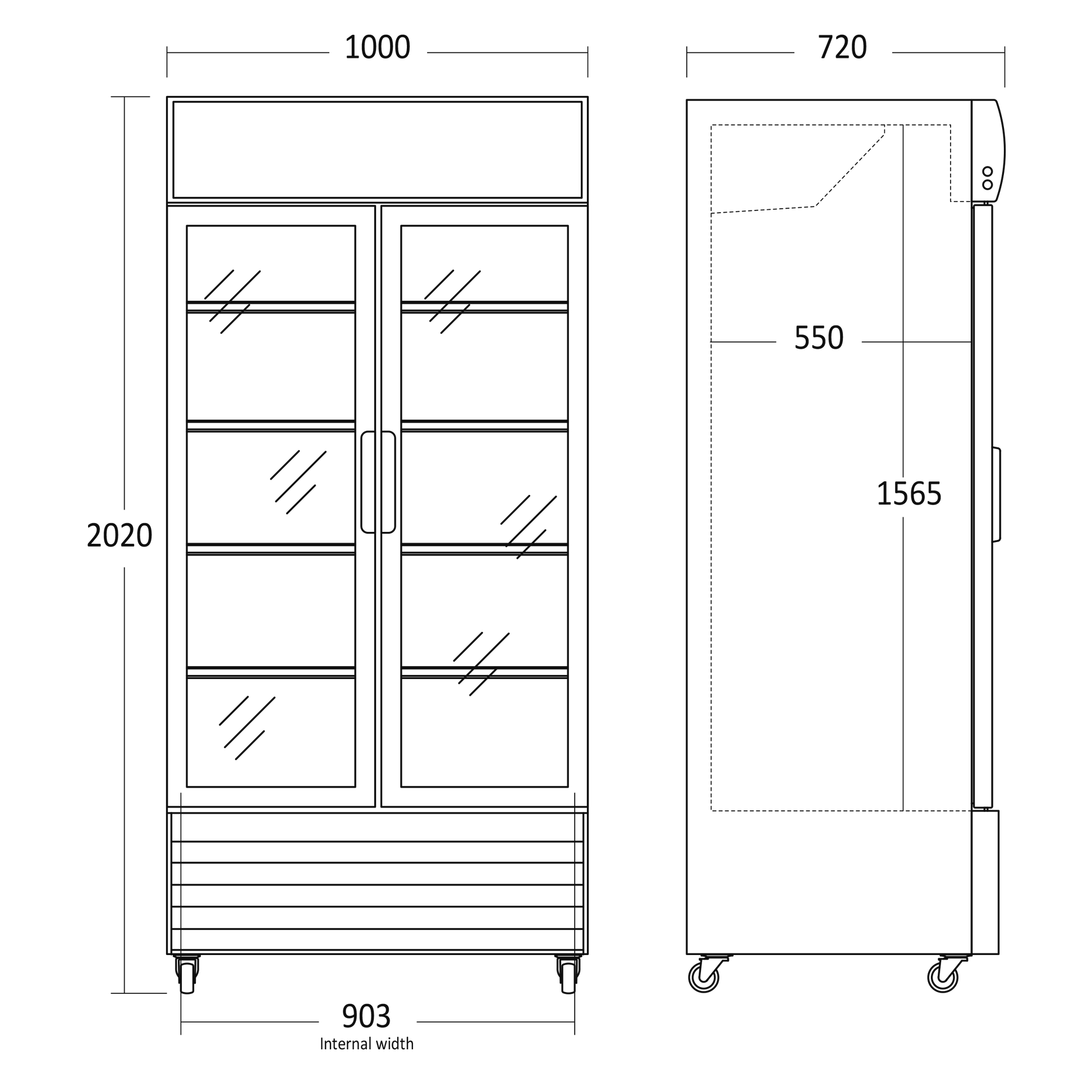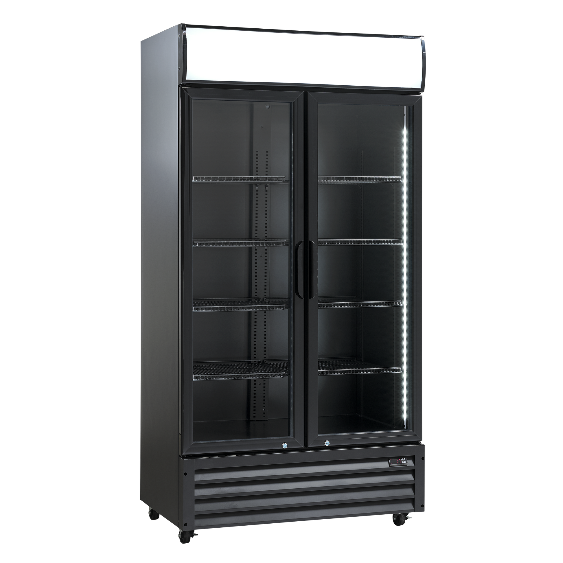 SD 802 HE er et stort 2-dørs display køleskab, med 776 netto liter kølerum.