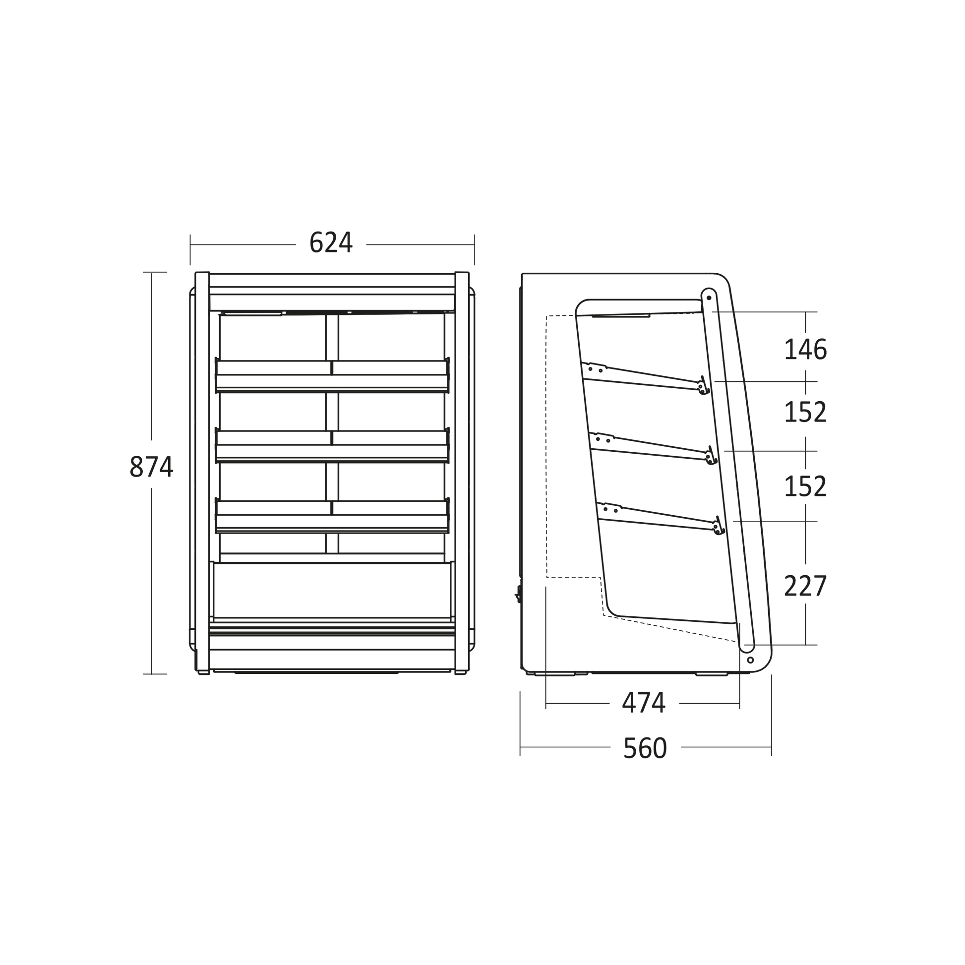 - Produktmål, HxBxD, mm: 874 x 624 x 560