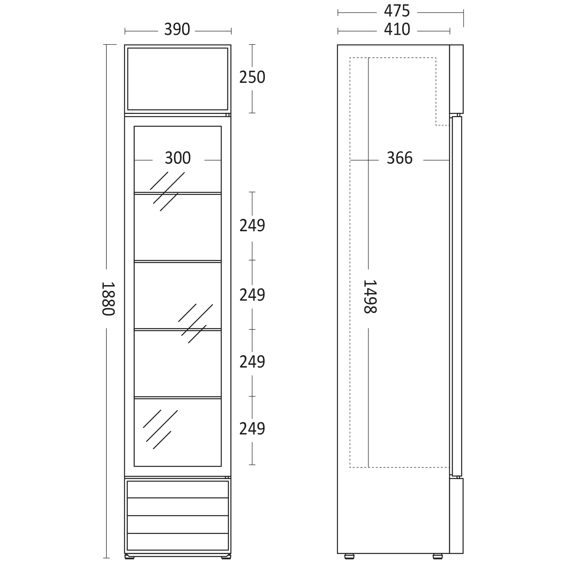 - Produktmål, HxBxD, mm: 1880 x 390 x 475