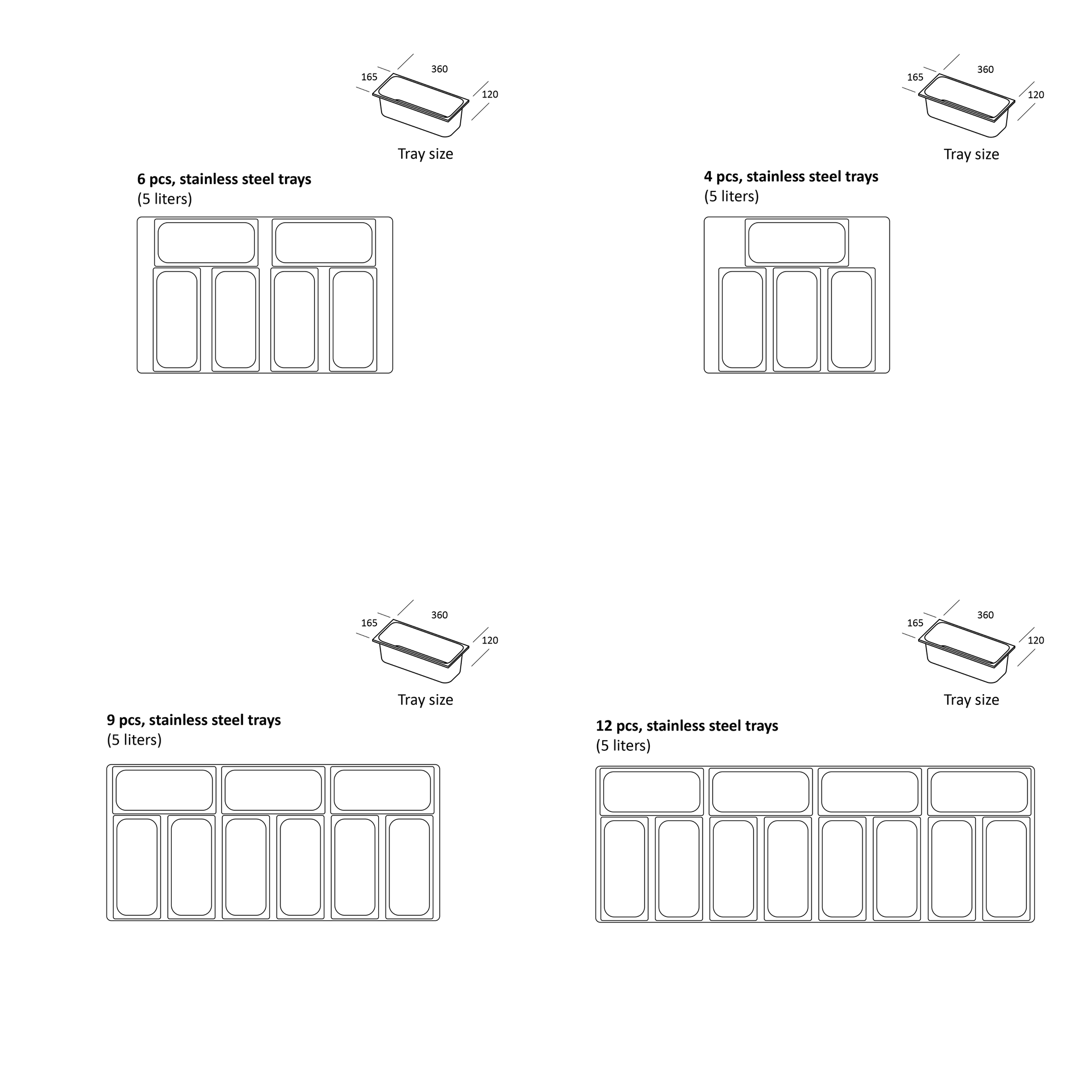 Diskens indre rummer et komplet sæt af rustfri 5L Napoli-kantiner, og der er ekstra opbevaringsplads under beholdere, tilgængelig via en separat bagdør – ideelt til reservevarer eller tilbehør.