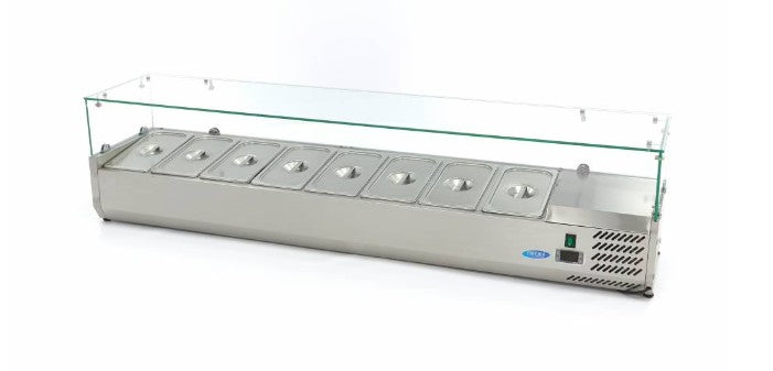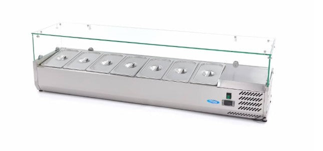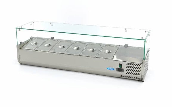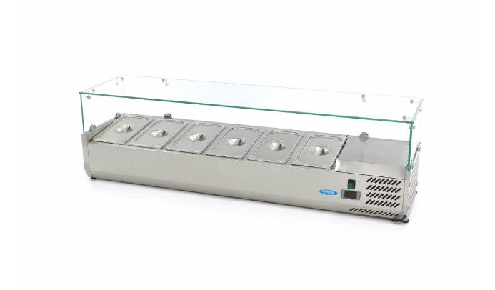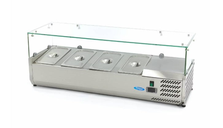 Køleopsatsen er ideelt til daglig intensiv brug i ethvert professionelt køkken fx til pizza eller sandwich. 1/3 GN-beholdere kan placeres i det for at hjælpe med at holde ingredienser ved den rette temperatur og klar til brug med et øjebliks varsel. Leveres med korrekt antal GN beholdere, så du ikke selv skal have besvær med at finde den rette størrelse - leveres klar til brug ved modtagelse, Ønsker du IKKE at modtage GN beholderne, så giv os blot besked.