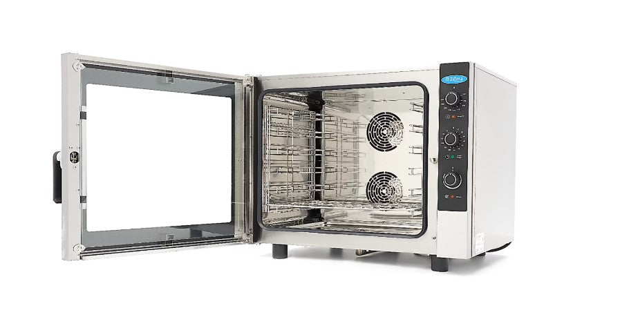 Med denne kombidampovn kan du dampe kød, fisk eller grøntsager og bevare vitaminer, smag og farve længere end ved andre tilberedningsmetoder. Ovnen kan også leveres med digitale knapper, hvis i foretrækker disse i stedet for analog drejeknapper. Denne kombidampovn er ideel til brug med 1/1 GN-bakker eller 60 x 40 cm bageplader. Der er plads til op til seks bakker ad gangen.