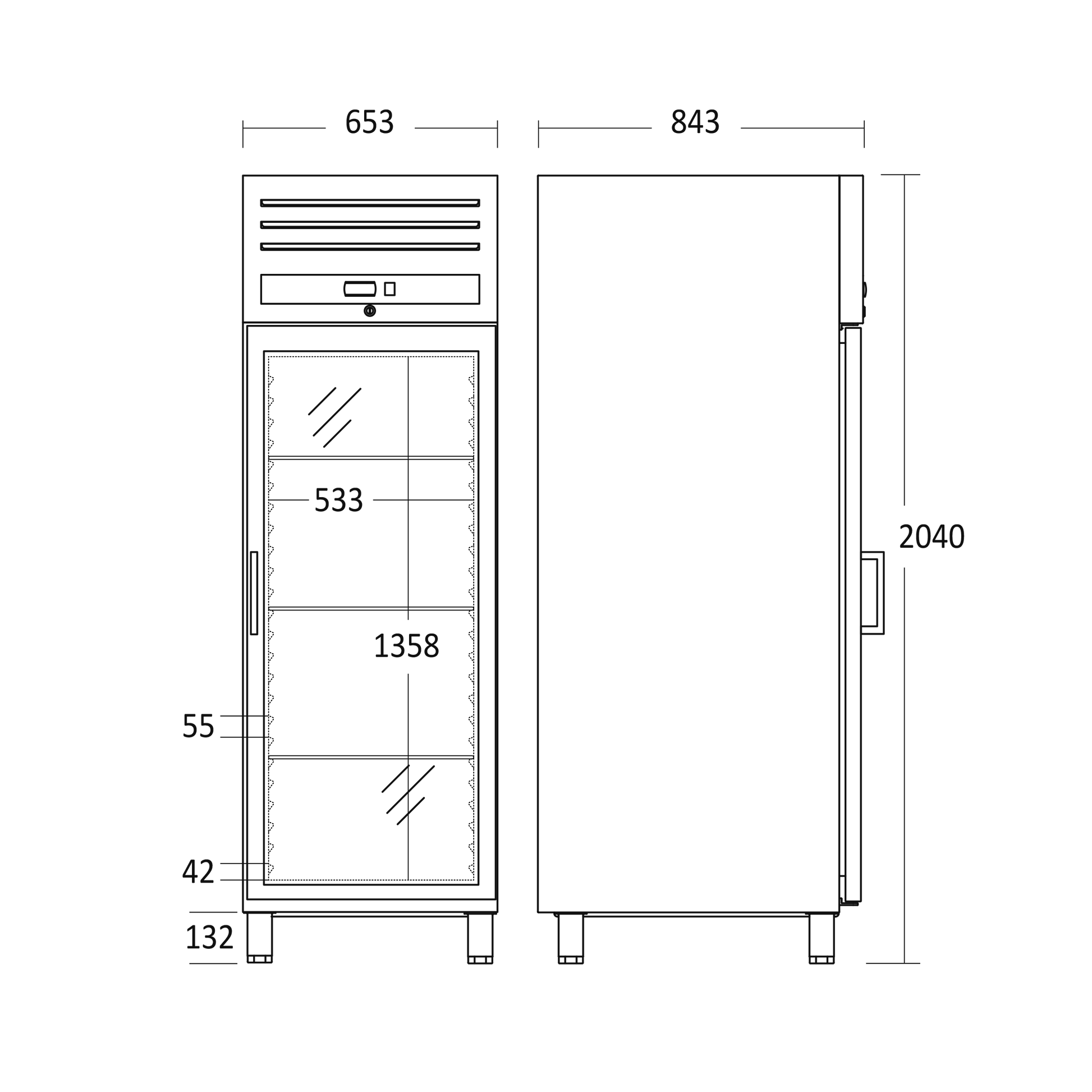 GUR 700 GDX er et heldørs køleskab på 461 liter, med vendbar glasdør og praktisk integreret lås i døren.