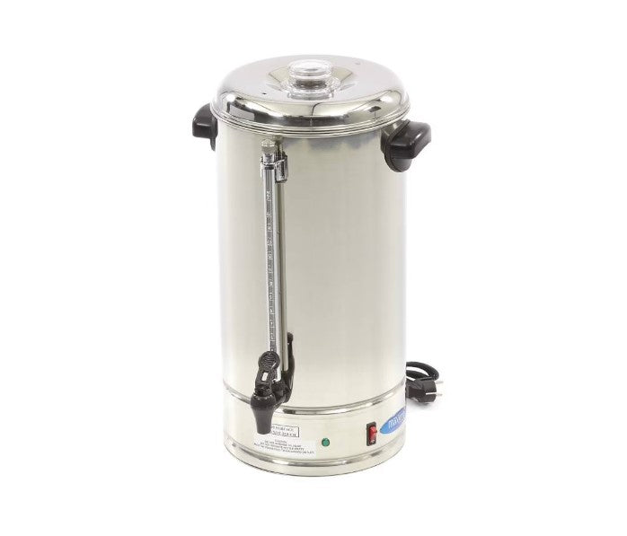 Det kan tage meget tid at lave kaffe til store grupper af gæster, hvis du kun bruger en almindelig kaffemaskine. Ved at bruge denne professionelle kaffekoger med en kapacitet på 15/10 liter kan du lave helt op til 120/80 kopper kaffe på en time. Denne maskine har et smukt design og er meget praktisk at bruge. Den er ideel til brug i cateringbranchen eller til et arrangement. Udover at brygge 15/10 liter kaffe kan du også holde kaffen varm og klar til servering. På ydersiden af kaffeperkolatoren er der en niveaumåler, så du altid ved, hvor fuld maskinen er.