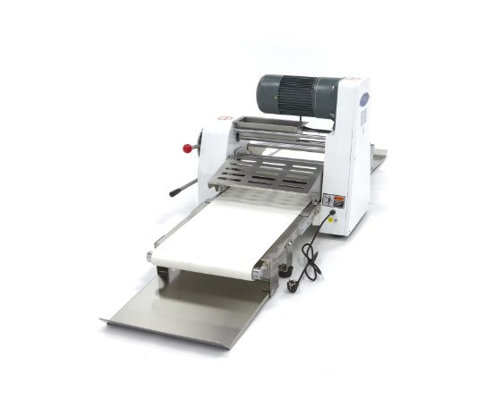 Denne professionelle dejudrulningsmaskine har en rulle på op til 38 eller 52 cm og giver dig mulighed for at rulle enhver form for dej jævnt ud. Hvis du arbejder meget med dej i et bageri, en restaurant, et pizzeria eller et hotel, er en dejudrulningsmaskine et must-have. Hvis du har begrænset plads i dit køkken, er denne bordmaskine praktisk, fordi du kan folde den sammen. Transportbåndet er specielt fremstillet til forarbejdning af fødevarer og er praktisk til forarbejdning af store mængder dej.