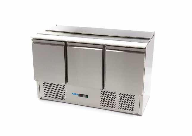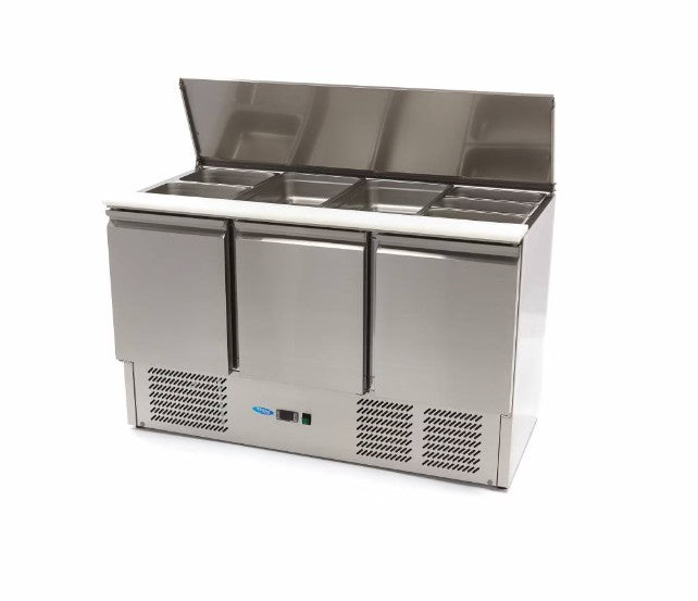 Saladetten er den ideelle løsning til sandwich eller salatbaren. Vælg mellem to eller tre låger i rustfrit stål nedenunder og et skærebræt i plast ovenpå, som er nyttigt til at skære brød eller snitte grøntsager. Bag hver skabslåge finder du en enkelt hylde, som kan justeres i højden, så du kan tilpasse den til dine behov. Dette professionelle køkkenapparat har en kapacitet på 257 eller 400 liter og er velegnet til brug med GN-kantiner, som dog ikke følger med saladetten (tilkøb). Du kan købe dem i webshoppen.