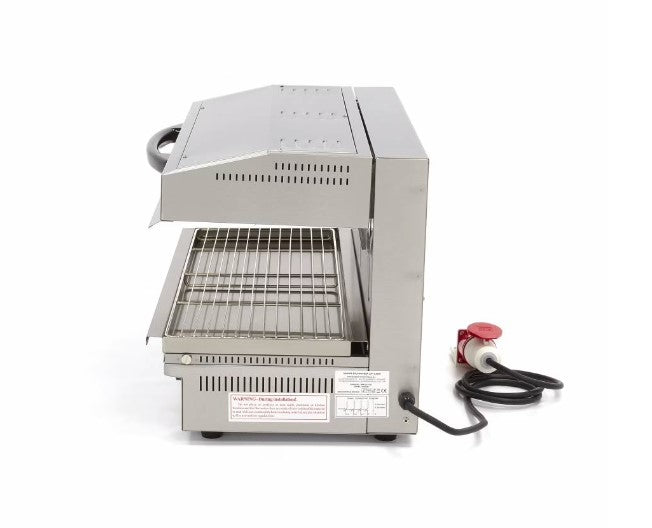 Professionel salamandergrill med løftehåndtag. Velegnet til gratinering, grill, optøning eller glasering. Denne salamander er udstyret med løftehåndtag, så du selv kan justere styrken. De rustfrie dele er nemme at rengøre og tåler opvaskemaskine.