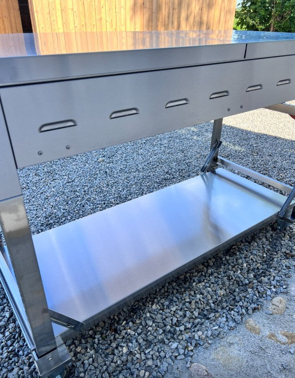 Fire box, riste, fedtopsamlingspander mv. er udført i rustfri stål 304 & 430