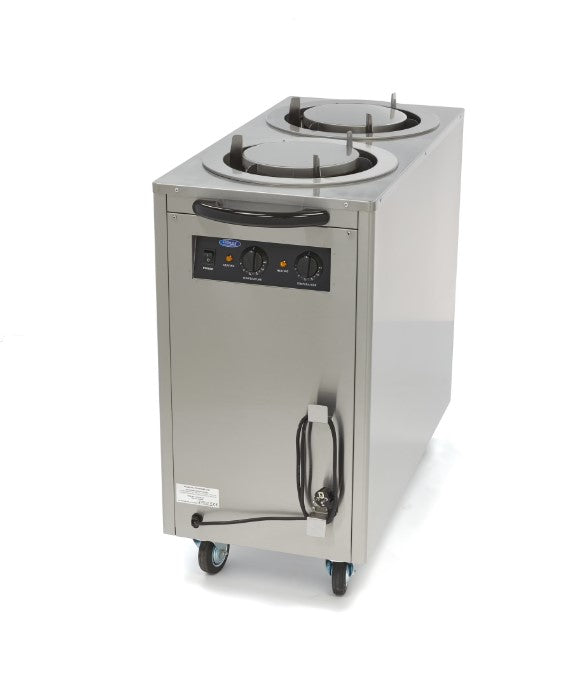 Temperaturen i denne tallerkenvarmer kan indstilles mellem 30 og 80⁰C, så de altid har den rette temperatur til de retter, du serverer. Delene er fremstillet af materialer af høj kvalitet, så du kan være sikker på, at denne tallerkenvarmer vil holde i mange år. Tallerkenvarmeren har fire hjul, inklusive bremser, så den kan flyttes rundt efter behov. Den har også en advarselslampe, der indikerer, hvornår apparatet har den rette temperatur.